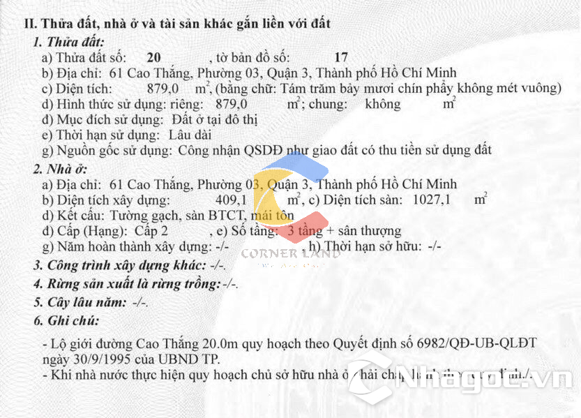 Bán Đất 61 Cao Thắng, Phường Bàn Cờ, Hồ Chí Minh