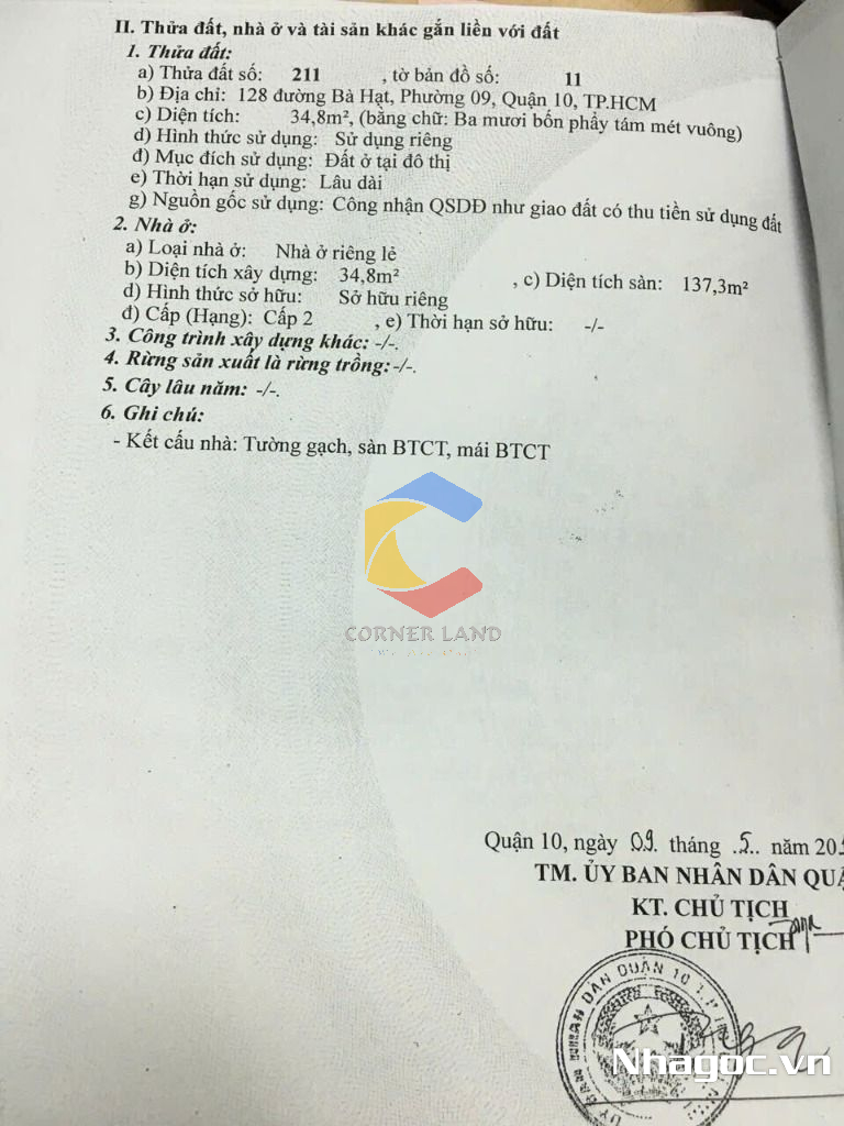 Bán nhà GÓC 2MT 276 Bà Hạt, Phường 9, Quận 10, Hồ Chí Minh