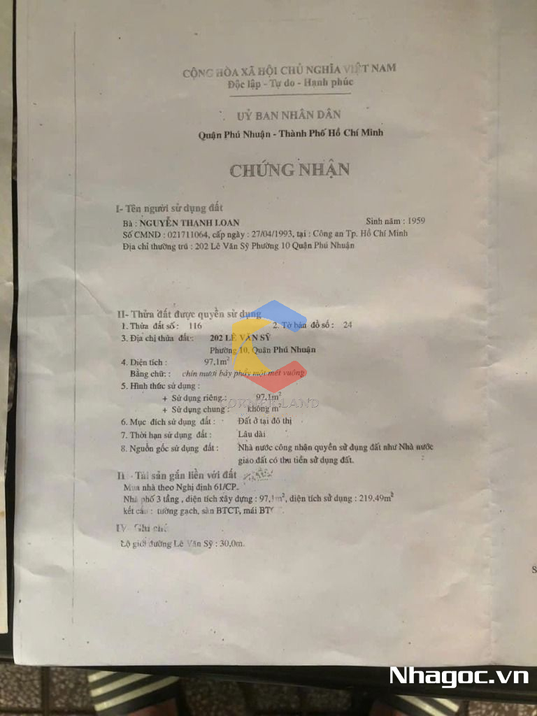 Bán nhà 202 Lê Văn Sỹ, Phường Phú Nhuận, Hồ Chí Minh