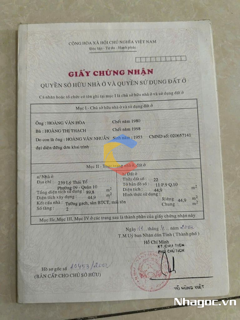 Bán nhà GÓC 2MT 237-239 Lý Thái Tổ, Phường 9, Quận 10, Hồ Chí Minh