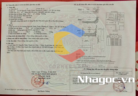 Bán nhà GÓC 2MT 331/10 Nguyễn Thiện Thuật, Phường 1, Quận 3, Hồ Chí Minh