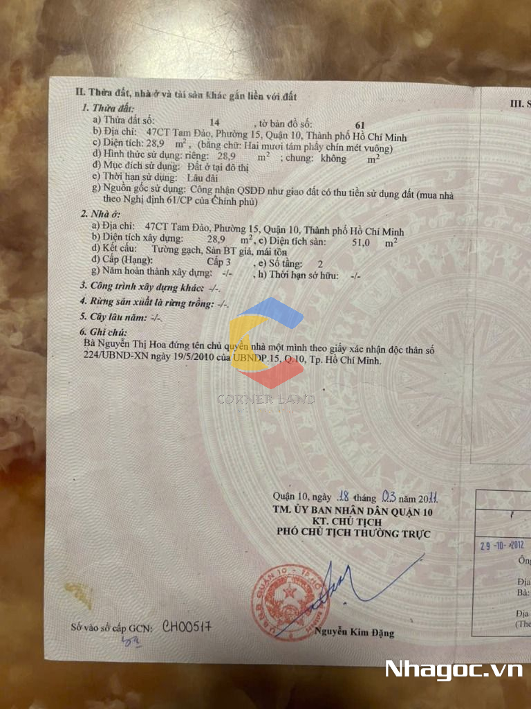 Bán nhà 47CT Đường Tam Đảo, Cư xá Bắc Hải, Hòa Hưng, Hồ Chí Minh
