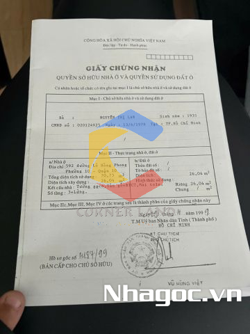 Bán nhà GÓC 2MT 497 Lê Hồng Phong, Phường Vườn Lài, Hồ Chí Minh