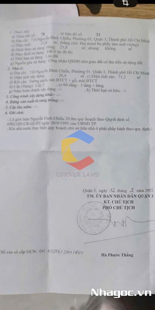 Bán nhà mặt tiền số: 710 Nguyễn Đình Chiểu, Phường 1, Quận 3, Hồ Chí Minh