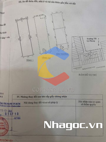 - Diện tích: 3.25x11.75m, nở hậu 3.7m - DT công nhận: 34,5 m2 - Diện tích khuôn viên 40,14m2 - DT sàn:107 m2