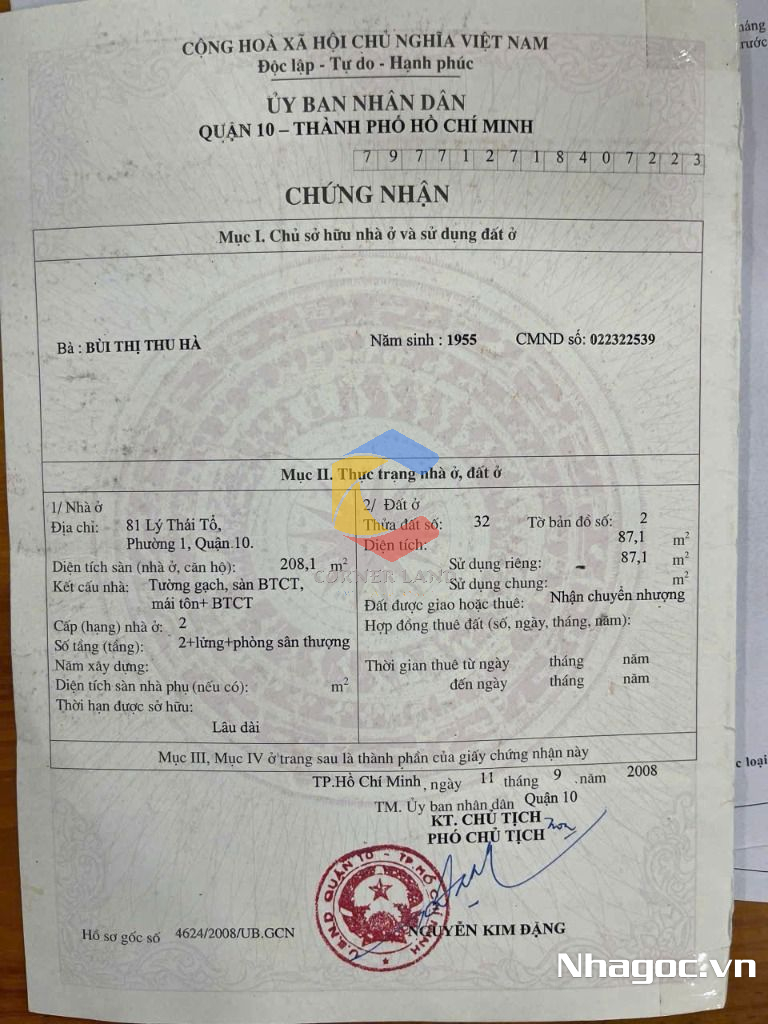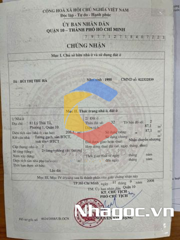 Bán nhà mặt tiền số: 81 Lý Thái Tổ, Phường 1, Quận 10, Hồ Chí Minh