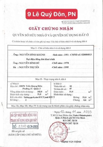 Bán nhà mặt tiền số; 9 Lê Quý Đôn, Phường 12, Quận Phú Nhuận, Hồ Chí Minh