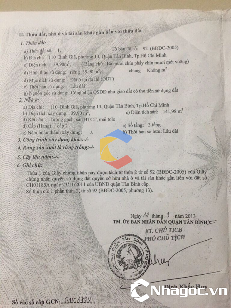 Bán nhà GÓC 2MT số 110 đường Bình Giã, Phường 13, Quận Tân Bình, Hồ Chí Minh