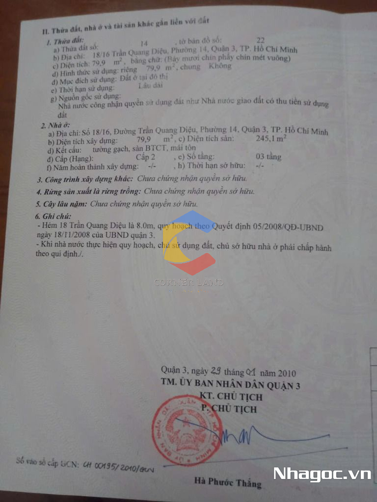Bán nhà hẻm 18/16 Trần Quang Diệu, Phường Nhiêu Lộc, Hồ Chí Minh
