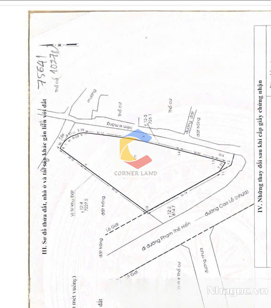 - Diện tích: 107x73m ( 1 cạnh 20m) ; Tổng DT: 3.628,7m2