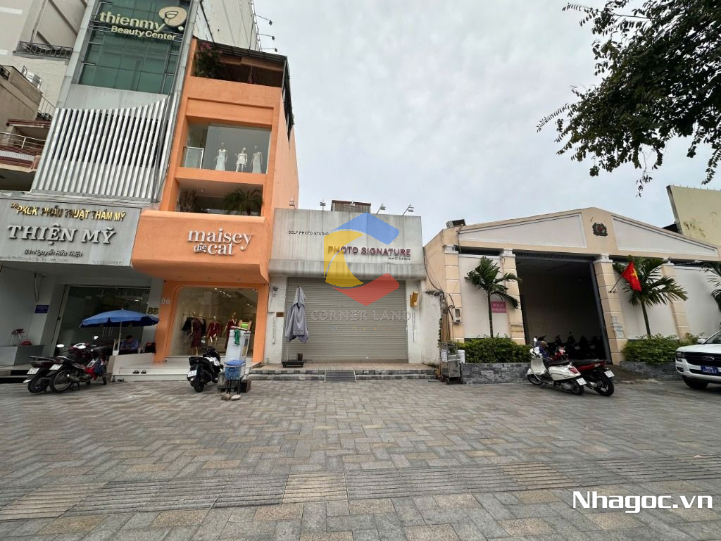 Mô tả chi tiết về nhà cho thuê: kế bên Highland, TGDĐ gần ngã tư Trần Hưng Đạo và Nguyễn Thái Học, phù hợp với ngành F&B..