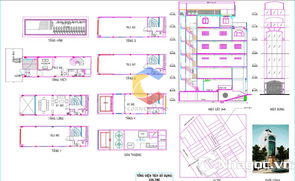 - Kết cấu: 1 hầm 1 trệt 1 lửng 4 lầu ST