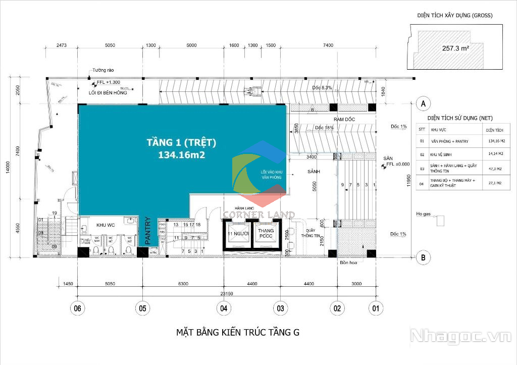+ Tầng G ( trệt ) : $35/m²/tháng - 134.16m2