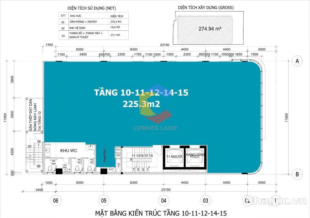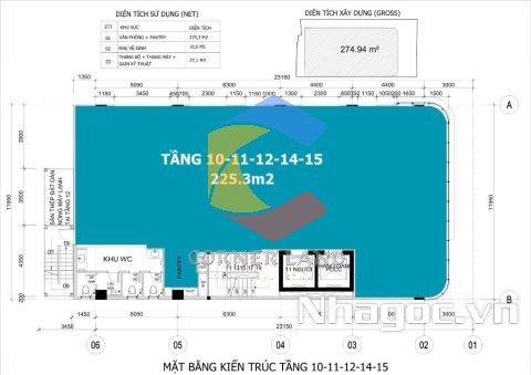 + Tầng 9 – 15 : $19/m²/tháng - 225.3m2 ( Tầng 9 119.2m2)