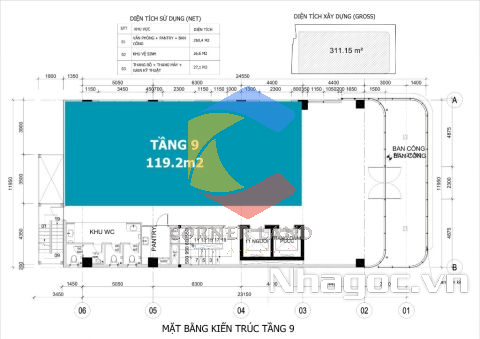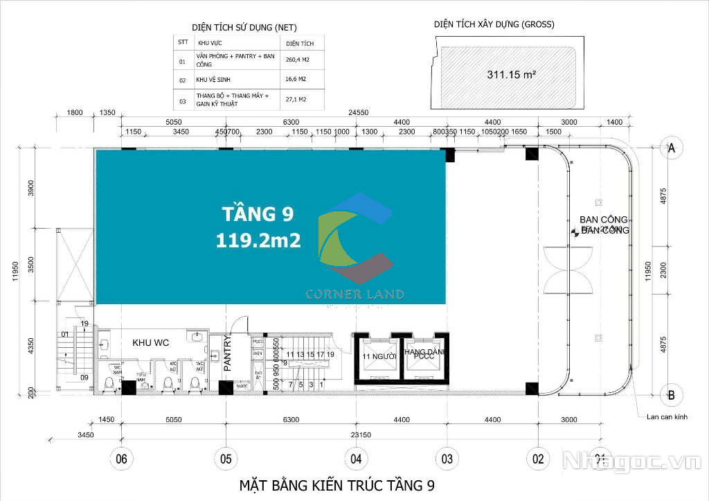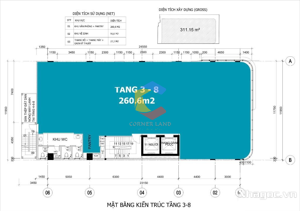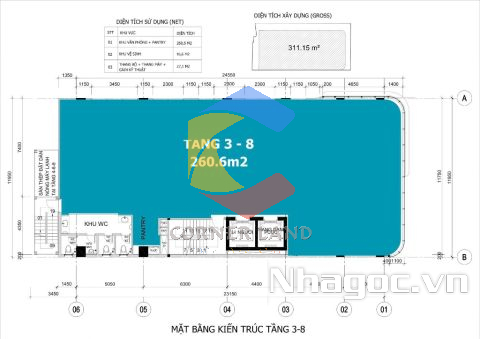 - Diện tích: 4.5x25m - lầu 1-8 DT: 5.7x26m