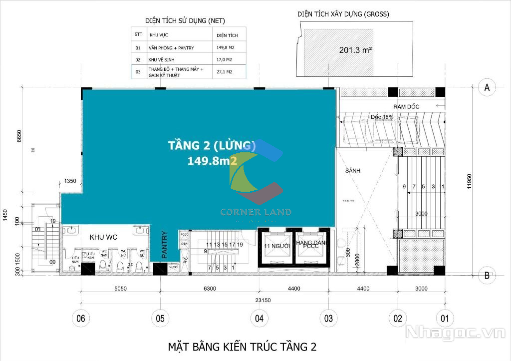 + Tầng 2 (lửng): $19/m²/tháng -149.8m2