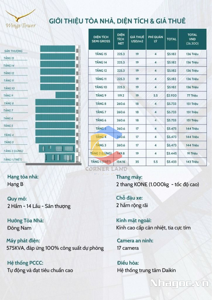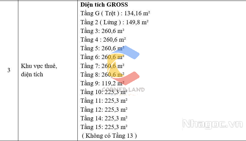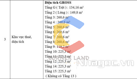 + Tầng 3 – 5 : $17/m²/tháng - 260.6m2