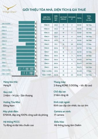 (Tiền thuê chưa bao gồm Phí quản lý và thuế GTGT, phí điện tính theo đơn giá nhà nước ) (Không có tầng 13)